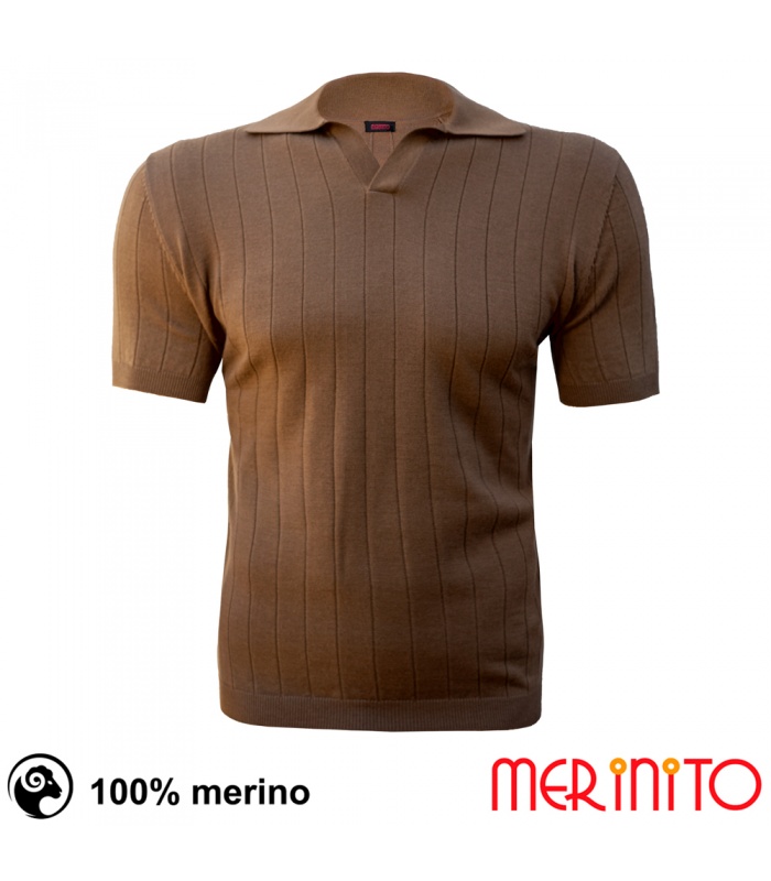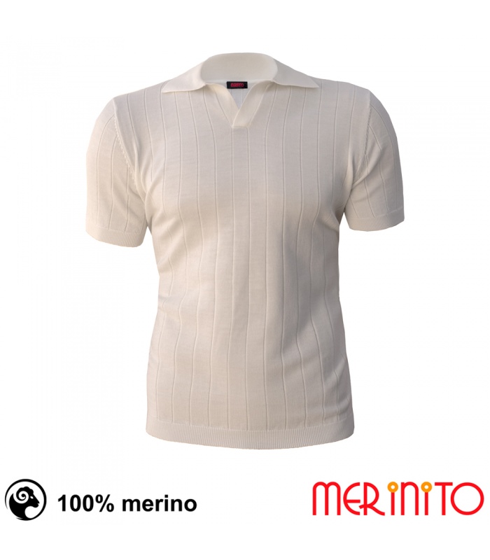 Tricoul Merinito KnitPolo este tricotat direct in panouri, "True Knit Polo", din 100% lana merinos extrafina. Designul este clasic, casual elegant, este un produs confortabil, usor, rezistent la mirosuri neplacute dar si cu capacitati sporite de absortie a umezelii si de reglare a temperaturii corpului. Este un Polo "Fully Fashioned" (modul de tricotare este folosit in produsele High End).