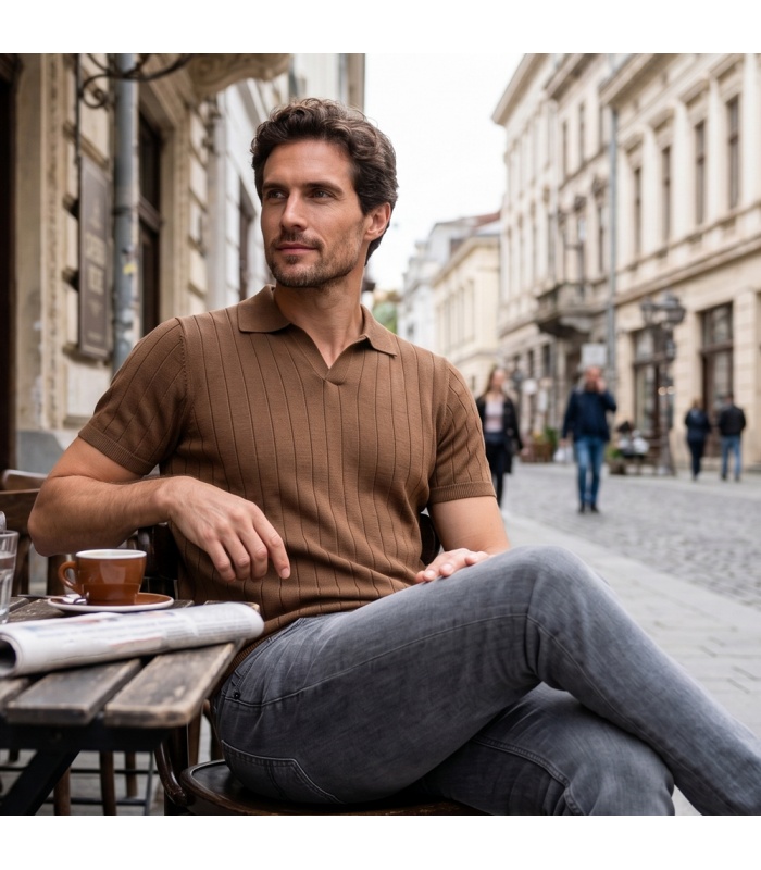 Tricoul Merinito Open Collar KnitPolo iti aduce un mix perfect de confort si stil. Realizat din 100% lana merinos extrafina WORSTED, acest tricou este ideal pentru garderoba ta, aducand un look casual-elegant si versatil.