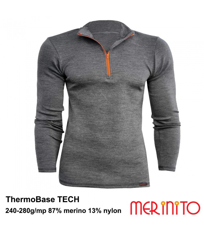 Bluza barbateasca Merinito HalfZip Tech este fabricata din dublu jerseu de 240-280g/mp din 87% lana merino extrafina si 13% nylon. Lana folosita este de inalta calitate, extrem de fina si placuta. Combinatia firului de lana cu o fibra fina de nylon creste rezistenta fara a afecta proprietatile benefice ale lanii merinos.